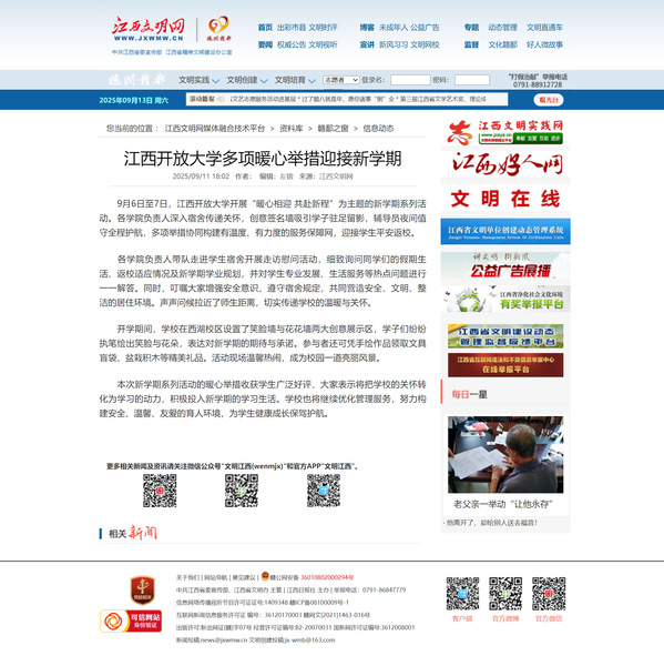 近日,江西开放大学开展“暖心相迎 共赴新程”为主题的新学期系列活动。各学院负责人深入宿舍传递关怀,创意签名墙吸引学子驻足留影,辅导员夜间值守全程护航,多项举措协同构建有温度、有力度的服务保障网,迎接学生平安返校。