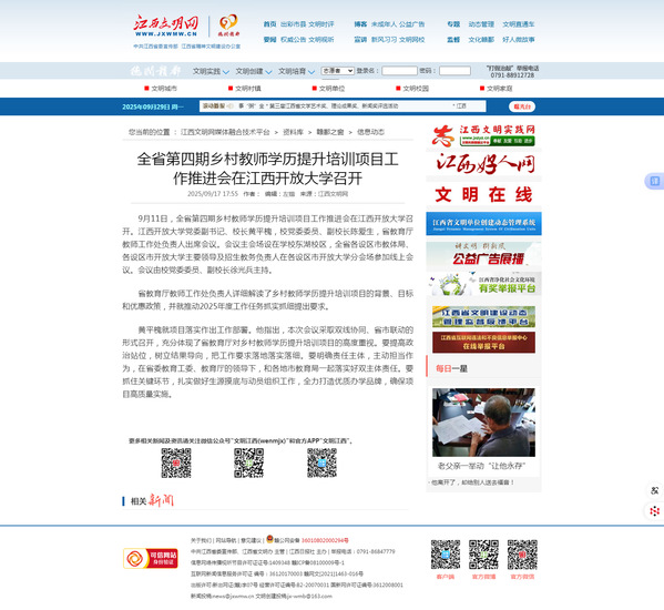 9月11日,全省第四期乡村教师学历提升培训项目工作推进会在江西开放大学召开。江西开放大学党委副书记、校长黄平槐,校党委委员、副校长陈爱生,省教育厅教师工作处负责人出席会议。会议主会场设在学校东湖校区,全省各设区市教体局、各设区市开放大学主要领导及招生教务负责人在各设区市开放大学分会场参加线上会议。会议由校党委委员、副校长徐光兵主持。