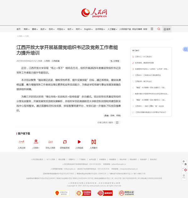 近日,江西开放大学采取“线上+线下”相结合方式,组织开展2025年度基层党组织书记及党务工作者能力提升专题培训。