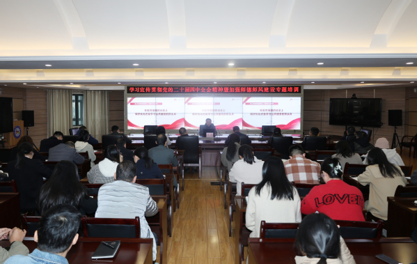 12月4日下午,学校宣讲团团员、校党委委员、宣传部部长张明以《在教育强国的征途上做好优化终身学习公共服务的排头兵》为题宣讲党的二十届四中全会精神。机关党委一支部、三支部全体党员,继续教育学院、老年教育学院全体教职工,各专业学院、社会培训学院一线教师、青年教师、辅导员代表参加学习。
