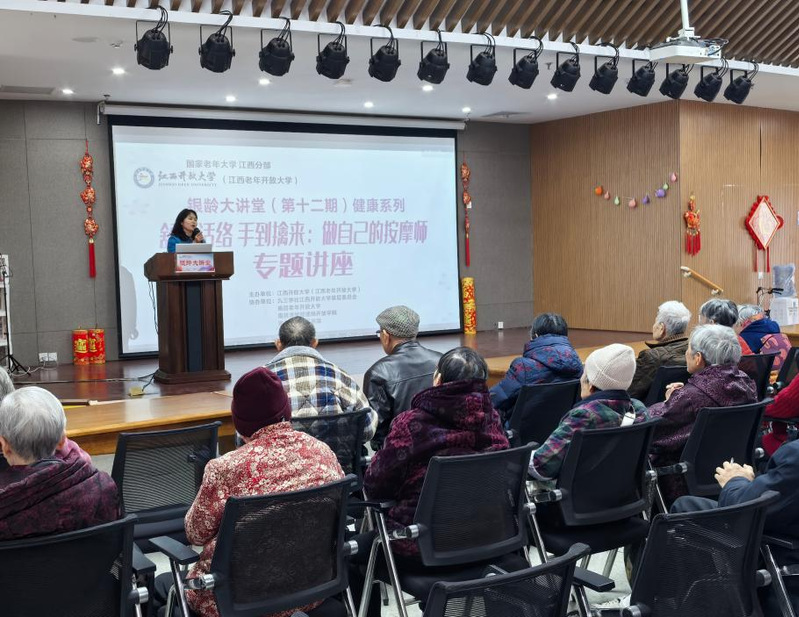 江西开放大学“银龄大讲堂”自启动以来,坚持聚焦老年群体实际需求,服务老年群体终身学习需求,助力积极老龄化社会建设,推出系列健康养生、传统文化、智慧助老等公益活动。本次讲座将专业按摩知识转化为实用生活技能,切实提升了老年朋友的自我保健意识与实操能力。学校将继续依托“银龄大讲堂”品牌,整合优质资源,推出更多贴合老年群体需求的实用活动,延伸学习资源与服务到基层一线,满足老年人多样化、高品质终身学习需求,助力老年教育事业高质量发展。(图文:老年教育学院 审校:梅莲 黄莎 张明)