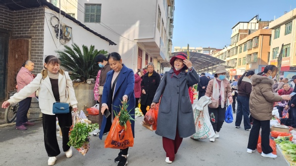 “赴圩买菜 乐学有为”活动中,赣州老年开放大学学员们迅速融入热闹的圩场氛围,穿梭于各类摊位之间,挑选新鲜农产品,与当地摊主亲切交流,在体验乡村集市独特魅力的同时,感受乡村振兴背景下农村的鲜活活力。